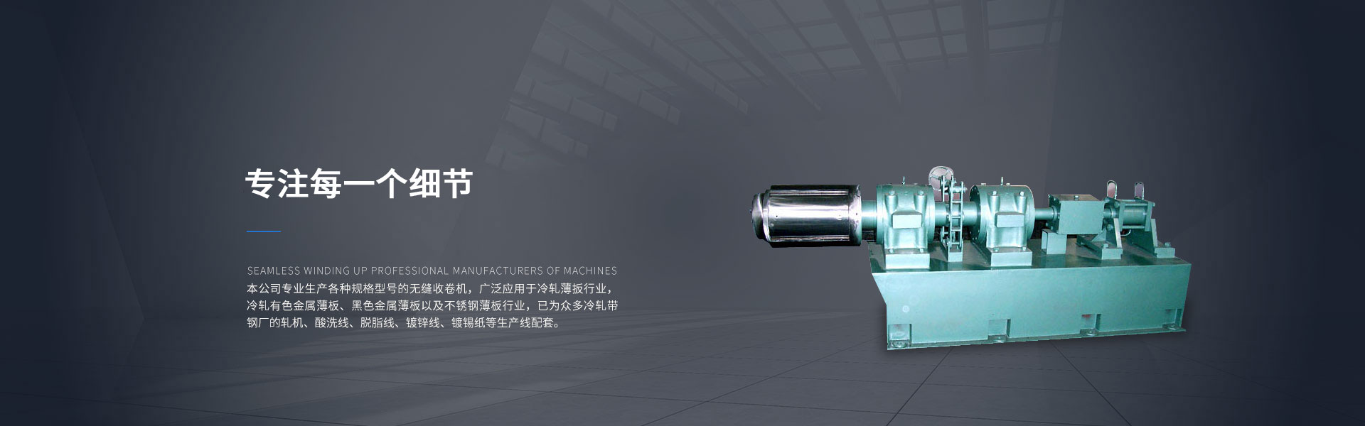 本公司專(zhuān)業(yè)生產(chǎn)各種規(guī)格型號(hào)的無(wú)縫隙收卷機(jī)一日千里(进展快,发展速度很快),廣泛應(yīng)用于冷軋薄板行業(yè),冷軋有色金屬薄板、黑色金屬薄板以及不銹鋼薄板行業(yè),已為眾多冷軋帶鋼廠(chǎng)的軋機(jī)万箭穿心、酸洗線(xiàn)、脫脂線(xiàn)、鍍鋅線(xiàn)、鍍錫線(xiàn)等生產(chǎn)線(xiàn)配套...